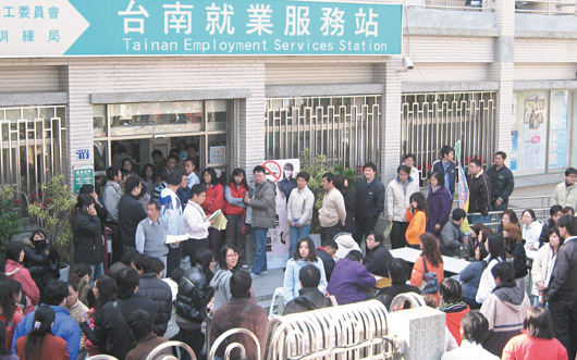 昨天各地就業(yè)服務(wù)站被擠爆,“勞委會”緊急將服務(wù)時(shí)間延長兩小時(shí)到晚上七點(diǎn)。據(jù)統(tǒng)計(jì),十一個(gè)大型就業(yè)服務(wù)站一天內(nèi)涌進(jìn)一萬六千人,是去年春節(jié)后第一天一千五百人的十倍多,其中近八成、約一萬兩千八百人請領(lǐng)失業(yè)給付,激增三十倍,去年開春后第一天只有四百四十人。