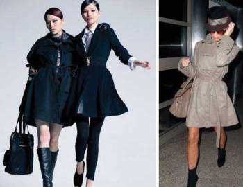 左:X形大衣寬松的燈籠袖高高隆起,塑造完美的肩部輪廓,搭配黑色皮質(zhì)長手套,顯得酷感十足。系緊腰帶讓大衣下擺張開,形成像New Look一樣的復(fù)古輪廓,搭配黑色長靴,既保暖又摩登!