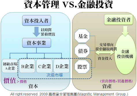由人組合而成,會運用到人的智慧的、而非僅止于資產(chǎn)價格低買高賣的,都屬于事業(yè)的范疇,也是資本管理的范疇。因此,不只是上市的企業(yè),未上市的企業(yè),也包含在內(nèi)。例如,入股于朋友開設(shè)的早餐店,作為長期股東,信賴管理者的誠信與努力,投入資本共同承擔(dān)營運上的挑戰(zhàn),也享受獲利所帶來的經(jīng)濟(jì)盈余。