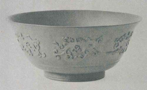 清代紫砂器偶有印模貼花的技巧。筆者曾在外國(guó)一間藝術(shù)館,見(jiàn)過(guò)一件仿西藏酒壺的清代初期紫砂器,像高身圓壺的造型;較特別的就是其紋飾,包括有印模貼花的八仙與飛鳳,貼花技巧和陳覲侯這個(gè)貼花碗大同小異,甚富裝飾性。