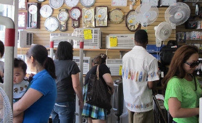 法拉盛緬街上紐約家電的老板鐘先生表示,近兩周的高溫,讓空調(diào)和風扇的銷路都不錯,尤其是空調(diào),個別天數(shù)突破百臺已經(jīng)不是問題,而為了準備更高氣溫而帶來的銷售高峰,他還備足了上千臺空調(diào)的貨源。