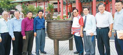 南方學(xué)院院長祝家華說,銅制的“南方之鼎”由新加坡藝術(shù)家陳瑞獻設(shè)計,在廈門制作,耗費5萬令吉,重200公斤,高160公分。“首相在接過火炬后,會在南方之鼎內(nèi)點燃圣火,過后將永久存放南院,象征人文精神永留于此!