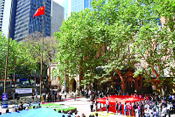 一日是新中國(guó)成立六十周年國(guó)慶之日,上午十時(shí)正,在悉尼市政府的廣場(chǎng),一早匯集了近二百名的中國(guó)留學(xué)生和華僑。留學(xué)生們舉著特大的中國(guó)國(guó)旗和澳洲國(guó)旗,等待一個(gè)偉大的時(shí)刻來(lái)臨。