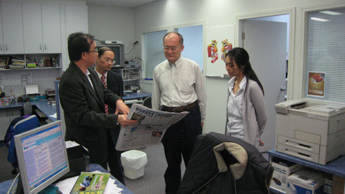 趙陽不顧旅途疲勞,隨即進行拜訪考察活動,于當(dāng)天下午先后走訪了《星島日報》、《澳洲新報》和《新快報》三家華文報社,詳細(xì)了解其稿件來源、采訪編輯、讀者群體、發(fā)行運營等方面的情況。