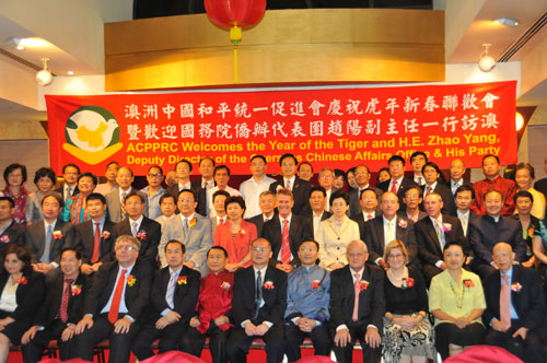 趙陽在致辭時盛贊澳大利亞華僑華人為促進中澳兩國的發(fā)展建設(shè)和中澳友好往來所做的貢獻,希望在澳僑胞發(fā)揚中華民族優(yōu)秀文化傳統(tǒng),積極融入當(dāng)?shù)厣鐣,遵守?dāng)?shù)胤珊土?xí)俗,為促進澳大利亞多元文化發(fā)展進步和中澳各領(lǐng)域的合作交流做出更大貢獻。趙陽的講話受到與會澳大利亞政要和僑胞的積極好評和贊賞。