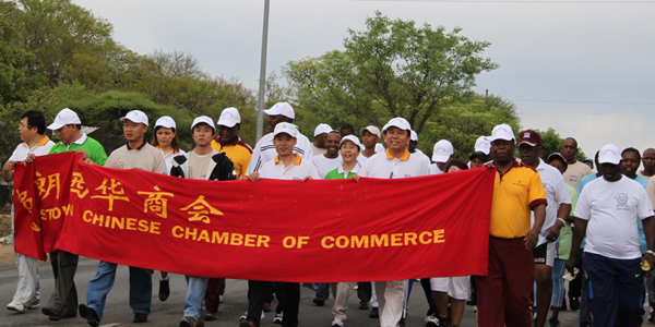 博茨瓦納警察總署署長齊馬科、中國駐博茨瓦納使館參贊茍皓東、領(lǐng)事郭斌、佛朗西斯敦警署、佛市華人華僑和印巴商人等約200人參加了游行。游行過程中,當(dāng)?shù)孛癖、印巴裔人紛紛加入游行隊伍?