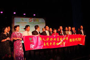 晚會行將結(jié)束時,房利總領(lǐng)事登臺宣布:“華僑華人回家看世博、親情中華世博行”南非代表團現(xiàn)在起程!