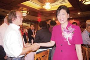 中新網(wǎng)9月3日電 據(jù)美國《星島日?qǐng)?bào)》報(bào)道,美國南加州僑界為慶祝趙美心成為有史以來第一位當(dāng)選聯(lián)邦眾議員的華裔女性,1日特別在洛杉磯華埠舉行盛大慶祝會(huì),近300名老僑新僑一起祝賀這位華人之光。