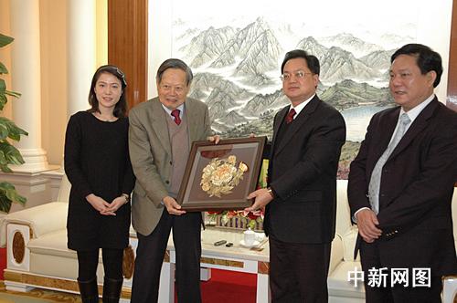 會見后,駱文智向楊氏伉儷贈送了潮州特色的潮繡“金牡丹”,并宴請了楊氏伉儷。晚宴后,楊振寧夫婦還在駱文智的陪同下,參觀了潮州市傳統(tǒng)工藝精品館、潮州文化藝術(shù)中心和潮州博物館。完
