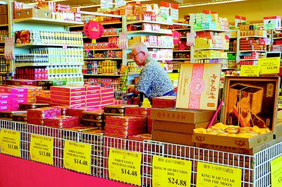 圣蓋博谷華人聚居城市華資超市,月餅上周開始上市,本地不少糕餅廠家也從本周開始推出月餅專柜。華資月餅進(jìn)口商表示,外州訂單,已從本周開始發(fā)貨,預(yù)計(jì)下周起全面上架。