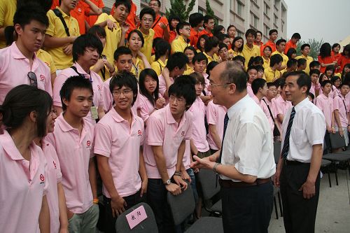 中新網(wǎng)7月22日電(董方) 北京華文學(xué)院2009年暑期漢語夏令營(yíng)活動(dòng)自7月初正式拉開帷幕以來,吸引了來自法國(guó)、意大利、英國(guó)、美國(guó)等歐美國(guó)家和印尼、泰國(guó)等東南亞國(guó)家的6個(gè)團(tuán)隊(duì)共225名華裔青少年參加。7月22日早上,身著夏令營(yíng)服裝的學(xué)生們?cè)缭缇途奂趯W(xué)校的操場(chǎng)上,由于身處不同的團(tuán)隊(duì),學(xué)員們大都互不相識(shí),然而大家都按耐不住激動(dòng)的心情,因?yàn)榫驮谶@里他們將留下第一張“全家!。