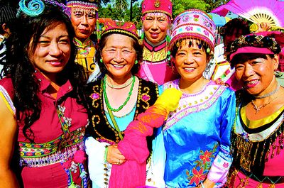 1977年赴美的臺(tái)灣原住民曹開梅女士此次第一次與會(huì),身著靚麗民族服飾與許多來自中國大陸的回族、滿族、彝族等少數(shù)民族朋友一起組成少數(shù)民族方陣,亮相蒙市升旗儀式。