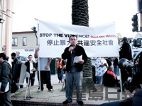 中新網(wǎng)4月10日電 據(jù)美國(guó)《星島日?qǐng)?bào)》報(bào)道,從舊金山華裔被非裔青少年圍毆最終致死案件開(kāi)始,繼而再有兩名華人被非裔青少年襲擊,小區(qū)回響日趨熱烈,近百華人較早前在警委會(huì)會(huì)議上發(fā)出怒吼后,4月8日晚的燭光活動(dòng)可以說(shuō)將民情推向另一高潮,而今次出席者除華人外,更不乏非華裔的市民,他們均要求“停止暴力共建安全社會(huì)。”