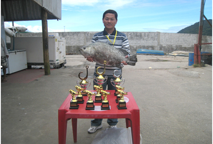 23日中午,大家滿載著喜悅和收獲陸續(xù)回到岸邊。在簡(jiǎn)短的頒獎(jiǎng)儀式上,頒發(fā)了獎(jiǎng)杯和獎(jiǎng)金。會(huì)長(zhǎng)吳耀宙先生以單條最重獲得第一名,成績(jī)是7.18kg,并獲得獎(jiǎng)金800元;獲得第二名的是來自韓國(guó)的DANIEL李先生,成績(jī)是5.98 kg,并獲得獎(jiǎng)金500元;獲得第三名的是ANDRE陳先生,成績(jī)是5.00 kg,并獲得獎(jiǎng)金300元。7條船上的優(yōu)勝者也得到獎(jiǎng)杯和紀(jì)念品。