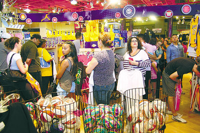 西裔諾加勒斯一家祖孫三代到湖人隊(duì)用品店選購(gòu)各自中意的服裝、鞋帽。他表示,一直是湖人隊(duì)忠實(shí)球迷,經(jīng)常購(gòu)買(mǎi)湖人隊(duì)紀(jì)念品,所有紀(jì)念品加起來(lái)可辦一個(gè)收藏展。