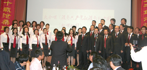 聯(lián)歡會(huì)上,米蘭華僑華人婦女會(huì)、米蘭第一中文學(xué)校、米蘭愛(ài)琴海樂(lè)隊(duì)及留學(xué)生代表等表演了歌舞、器樂(lè)、書法等節(jié)目,用各種形式表達(dá)對(duì)祖國(guó)60華誕的衷心祝賀!最后,米蘭華人合唱團(tuán)合唱《沒(méi)有共產(chǎn)黨就沒(méi)有新中國(guó)》和《歌唱祖國(guó)》,全體來(lái)賓與合唱團(tuán)一同高歌,唱出了全體旅意華人的心聲。