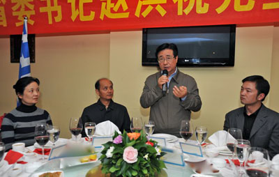 趙書記給浙江籍旅希僑胞帶來(lái)了浙江省委省政府和全省人民的親切問(wèn)候,稱贊他們?cè)谥С直本⿰W運(yùn)會(huì)圣火在希臘取火傳遞、支援四川抗震救災(zāi)、為希臘森林火災(zāi)和困難兒童捐款捐物等行動(dòng)中,體現(xiàn)出僑民心系祖國(guó)發(fā)展、積極融入希臘、建設(shè)模范僑區(qū)的優(yōu)良精神風(fēng)貌。他和大家一起深情回顧了新中國(guó)建國(guó)60年、改革開放30多年來(lái)取得的輝煌成就,對(duì)僑胞們?cè)谙ED艱苦創(chuàng)業(yè)十余年取得的豐碩成果表示祝賀。