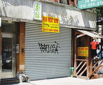 華埠地區(qū)一直以來可說是“一鋪難求”,甚少會有店鋪空置,有時為了搶租同一店鋪,租戶愿意提高價錢或私底下給房東一些“好處”,也是當(dāng)年“臺底錢”交易的成因.然而,隨著金融風(fēng)暴,美國經(jīng)濟(jì)跌入谷底,華埠地區(qū)到處吉鋪林立,即使仍在經(jīng)營的小商戶,也因不敵經(jīng)濟(jì)大環(huán)境不佳和租金過高的雙重打擊,關(guān)門大吉,在華埠伊利沙白街長達(dá)26年的“快樂唱片”就是其中之一!翱鞓烦笨烧f是曼哈頓華埠地區(qū)最早經(jīng)營音樂唱片、卡帶銷售生意的“老字號”商店.