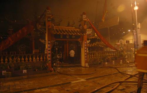 這宗火災(zāi)在22日晚上約9時(shí)30分發(fā)生,當(dāng)時(shí)雖有民眾發(fā)現(xiàn)廟宇冒出濃煙,看到廟里起火,可是由于廟宇大門深鎖,眾人無法進(jìn)入救火,火勢越燒越猛,民眾立即致電消拯局及警方。根據(jù)現(xiàn)場所見,和安宮的建筑結(jié)構(gòu)并沒有被燒毀,只是內(nèi)部尤其是中間天井處嚴(yán)重被燒毀。