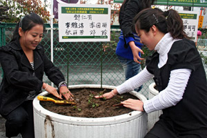 中新網(wǎng)11月18日電 據(jù)日本新華僑報(bào)網(wǎng)報(bào)道,17日,正在日本山梨縣笛吹市石多家溫泉工作的中國(guó)研修生們?cè)谟^光車站附近栽種下一簇簇美麗的薔薇花。