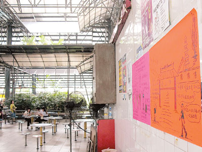 記者前往峇央峇魯巴剎飲食中心時,一踏入?yún)s看到一張接一張的漫畫大字報,原來是由一名張姓相命師親手動筆,通過“老夫子和大番薯”卡通人物訴說馬華亂象,順水推舟,若有者“迷失”,能向他請教,指點迷津。