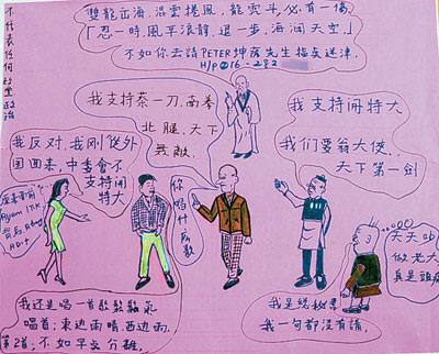 張貼在飲食中心周圍的有關漫畫大字報顏色非常鮮艷,內(nèi)容都是以“馬華武林大會”、“支持特大”、“翁大使要第一劍”、“中委會不支持特大”、及“雙龍出海,混云卷風,龍虎斗,必有一傷”,及勸人退一步海闊天空等字眼。