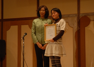 中新網(wǎng)12月29日電 據(jù)日本新華僑報(bào)網(wǎng)報(bào)道,12月23日,第三屆“中華杯”在日華僑華人青少年漢語(yǔ)演講比賽圓滿落幕,中國(guó)駐大阪總領(lǐng)事館館張欣副總領(lǐng)事出席頒獎(jiǎng)儀式,并為高中組一等獎(jiǎng)獲獎(jiǎng)?wù)哳C獎(jiǎng)。