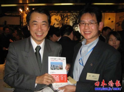 曾經(jīng)擔(dān)任全日本中國(guó)留學(xué)人員友好聯(lián)誼會(huì)會(huì)長(zhǎng)多年的東北師范大學(xué)研究生院國(guó)際教育處處長(zhǎng)的李光哲博士,接受《日本僑報(bào)》記者的國(guó)際電話采訪時(shí),回憶了和菅直人交流的愉快時(shí)光,對(duì)菅直人當(dāng)選日本新的首相感到由衷的高興。李博士曾經(jīng)多次參加菅直人主辦的中國(guó)留學(xué)生交流會(huì),并代表中國(guó)留學(xué)生向菅直人贈(zèng)送了《留日百年巡禮》紀(jì)念畫冊(cè)等,李光哲說,菅直人當(dāng)選新的首相,無論對(duì)中日關(guān)系、對(duì)在日中國(guó)留學(xué)生來說,都是非常好的事情。