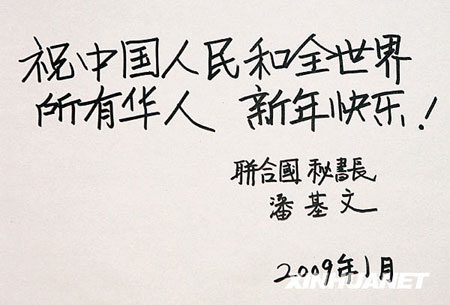 在中國傳統(tǒng)春節(jié)佳節(jié)到來之際,多國政要紛紛發(fā)表賀詞賀信,向華人和中國人民拜年,祝賀新春。在這其中最為引人注目的是,1月23日,聯(lián)合國秘書長潘基文特意用漢字寫下了對中國人民和全球華人的新春祝福:“祝中國人民和全世界所有華人新年快樂!”