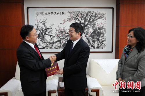 中新網(wǎng)北京3月31日電(記者 張冬冬)中國國務(wù)院僑辦副主任任啟亮今日在此間向五位第二屆華僑華人專業(yè)人士“杰出創(chuàng)業(yè)獎”獲得者代表授予獎?wù)虏㈩C發(fā)證書,以褒揚其對中國經(jīng)濟建設(shè)、科技進步和建設(shè)創(chuàng)新型國家所做的貢獻。