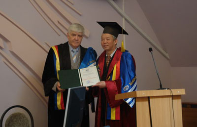 摩自由國際大學(xué)校長加爾班表示,施隆壯致力于發(fā)展兩國文化教育合作,為自由國際大學(xué)孔子學(xué)院的成立做出了卓有成效的貢獻(xiàn),學(xué)校決定授予施大使榮譽(yù)博士學(xué)位,以此對其表示感謝。