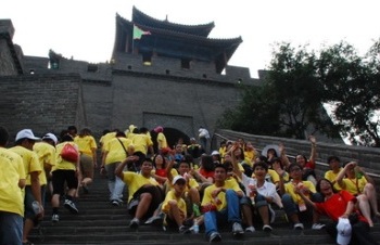 營員中的絕大多數(shù)是第一次到中國,長城在他們的腦海里只是關(guān)于“世界第八大奇跡”的想象,有機(jī)會親自攀登,大家的心情非常激動。車行至居庸關(guān)景區(qū),翠峰重迭,風(fēng)光旖旎,長城蜿蜒如龍盤踞在崇山峻嶺之間,營員們按捺不住激動的心情,不禁歡呼起來。