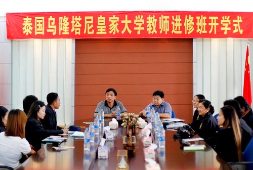 中新網(wǎng)10月11日電 據(jù)華僑大學(xué)華文學(xué)院網(wǎng)站消息,10月11日上午,泰國烏隆塔尼皇家大學(xué)教師團(tuán)開學(xué)式在華僑大學(xué)華文學(xué)院一號(hào)樓會(huì)議室舉行。華文學(xué)院副院長陳旋波、培訓(xùn)部主任李金鈔等出席了開學(xué)式。