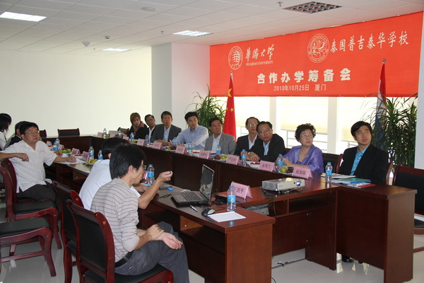 中新網(wǎng)10月27日電 據(jù)華僑大學(xué)新聞網(wǎng)消息,10月25日,華僑大學(xué)與泰國普吉泰華學(xué)校合作辦學(xué)籌備會(huì)在華僑大學(xué)廈門校區(qū)舉行。會(huì)議由華僑大學(xué)華文教育辦公室主任趙明光主持,建筑學(xué)院副院長申曉輝及華教辦全體工作人員與泰國普吉泰華中學(xué)考察團(tuán)一行細(xì)致討論了雙方合作建設(shè)國際學(xué)校的建筑設(shè)計(jì)方案與教學(xué)相關(guān)工作。