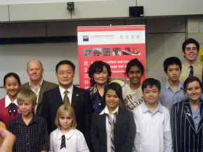 任共平在致辭時(shí)表示,很高興看到昆州學(xué)生如此踴躍地學(xué)習(xí)中文并參加中文演講大賽,祝賀獲獎(jiǎng)?wù)呷〉玫暮贸煽?jī)。他指出,學(xué)習(xí)中文既可以為自己增加一門語(yǔ)言技能,也能打開了解中國(guó)歷史和文化的窗口,建立起相互溝通、增進(jìn)中澳兩國(guó)人民友誼的橋梁。他表示,各位學(xué)生在慶祝中華人民共和國(guó)建國(guó)60周年之際參賽、獲獎(jiǎng),具有特殊意義,希望同學(xué)們繼續(xù)努力。