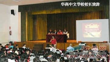 華商中文學(xué)校校長(zhǎng)黃英首先致辭,她說(shuō),祖國(guó)60周年大慶,國(guó)內(nèi)人民與海外僑胞共歡顏,又逢學(xué)校開(kāi)學(xué)典禮,雙喜臨門(mén)。在談到華商中文學(xué)校學(xué)生成績(jī)的時(shí)候,黃英很是欣慰和自豪,她說(shuō)學(xué)校學(xué)生參加的一系列的競(jìng)賽,都取得了令人滿(mǎn)意的成績(jī),其中三位學(xué)生在HSK漢語(yǔ)考試中脫穎而出,表現(xiàn)相當(dāng)搶眼,而在國(guó)務(wù)院僑辦組織的海外華人學(xué)子書(shū)畫(huà)展上,學(xué)校共有20名學(xué)生獲獎(jiǎng),從一定程度上調(diào)動(dòng)了學(xué)生的熱情和積極性。黃英還特別提到了學(xué)生的個(gè)人榮譽(yù)的問(wèn)題,她說(shuō)學(xué)生的榮譽(yù)既屬于個(gè)人,更屬于整個(gè)海外華人學(xué)子,為中國(guó)人爭(zhēng)光,應(yīng)該感到無(wú)比的驕傲和自豪。