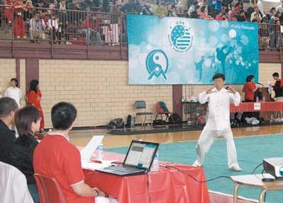 這次比賽分傳統(tǒng)、散手、器械、規(guī)定套路、太極等類,參賽選手有初學(xué)不久者,也有多次參賽的老資格運動員,參與熱情最高的是生長在美國本地的青少年。
