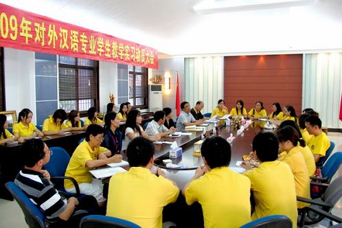 中新網(wǎng)10月10日電 據(jù)華僑大學華文學院網(wǎng)站消息,10月9日下午,華僑大學2009年對外漢語專業(yè)學生赴泰國參加“中華文化大樂園”教學實習動員會舉行。華大華文學院副院長陳旋波、副書記張燈、副院長李曉潔以及5位部門領(lǐng)導和24名對外漢語專業(yè)學生參加大會。