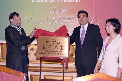 由中國(guó)國(guó)際廣播電臺(tái)在巴基斯坦開設(shè)的首家廣播孔子課堂29日在巴首都伊斯蘭堡萬(wàn)豪酒店舉行揭牌儀式。這家廣播孔子課堂是受中國(guó)國(guó)家漢辦委托,由中國(guó)國(guó)際廣播電臺(tái)與巴基斯坦穆扎法爾格爾市短波收聽俱樂部合作建立的。