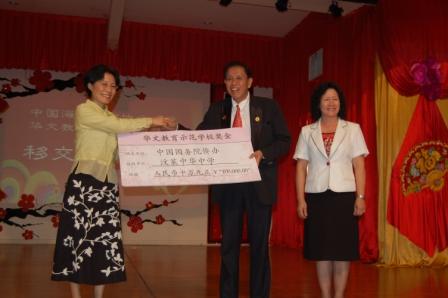 中新網(wǎng)2月8日電 2月6日,中國駐文萊大使佟曉玲在出席文萊中華中學(xué)舉辦的“虎臥華堂耀春輝”揮春比賽頒獎(jiǎng)典禮時(shí),代表中國海外交流協(xié)會(huì)向該校轉(zhuǎn)交了10萬元人民幣辦學(xué)經(jīng)費(fèi)。