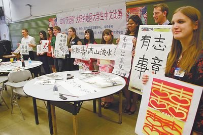 中新網(wǎng)4月6日電 據(jù)美國(guó)《世界日?qǐng)?bào)》報(bào)道,大紐約地區(qū)“漢語(yǔ)橋”大學(xué)生中文比賽4月3日分別在紐約大學(xué)和俄亥俄州立大學(xué)舉行初賽,80多名美國(guó)學(xué)生參加了初級(jí)組和高級(jí)組比賽。承辦單位中國(guó)留學(xué)服務(wù)中心方面指出,今年比賽規(guī)模擴(kuò)大,高手云集。