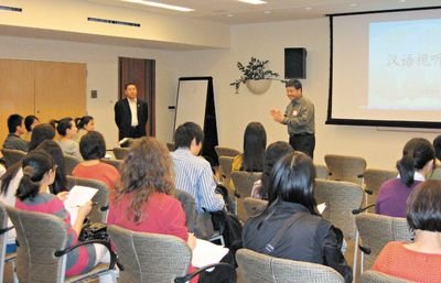 中新網4月16日電 據美國《世界日報》報道,美國韋伯斯特大學孔子學院日前在該校愛莫森圖書館會議室舉辦第二屆漢語教師研修班。近50位圣路易地區(qū)漢語教師及漢語教學熱心人士參加培訓會議。