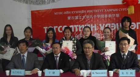 中新網(wǎng)5月26日電 據(jù)國家漢辦網(wǎng)站消息,5月21日,蒙古國立大學孔子學院隆重舉行了春季學期結(jié)業(yè)典禮。院長于健、副院長其米德策耶、院長助理朱軍利及專家教師烏蘭哈達出席了結(jié)業(yè)典禮。