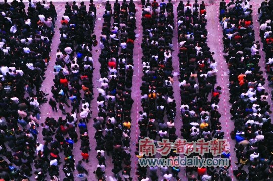 誰說今年企業(yè)招工難?過去一個多月,龍華富士康門口日日數(shù)千人求職,密度可比春運火車站,進(jìn)人群易出人群難,站著睡覺不會倒,上個廁所得憋著。昨日凌晨5時左右,由于保安未上班無人看管,求職者更是擠倒欄桿,人仰馬翻,互相踩踏,幸無人員傷亡。