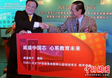 在捐贈(zèng)儀式上,威盛宣布向北京大學(xué)繼續(xù)教育學(xué)院、文理應(yīng)用學(xué)院ESEC教育機(jī)構(gòu)TIP項(xiàng)目捐贈(zèng)一批威盛Nano凌瓏處理器平臺(tái)電腦教學(xué)設(shè)備,這是威盛從2006年開始對(duì)該西部英語教師公益培訓(xùn)項(xiàng)目的第三期捐贈(zèng)。與此同時(shí),威盛中國芯成長(zhǎng)數(shù)字營(yíng)云南分站也正式揭牌,從而將威盛中國芯成長(zhǎng)數(shù)字營(yíng)的分站數(shù)量增加到21個(gè),基本覆蓋整個(gè)西部地區(qū)。