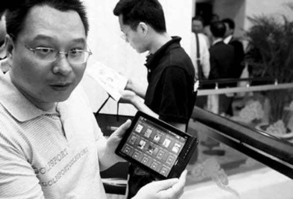 圖為消費(fèi)者展示手中的國(guó)產(chǎn)平板電腦。盡管沒(méi)有鍵盤,但平板電腦依然具有筆記本電腦的各種功能。 本報(bào)記者 陳 靜攝