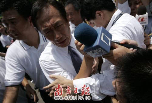 最后,隨郭臺銘來到正在富士康召開的“第三屆海峽兩岸心理暨社會(huì)學(xué)專家團(tuán)調(diào)研座談會(huì)”現(xiàn)場,向媒體介紹富士康應(yīng)對跳樓事件所采取的四大措施。