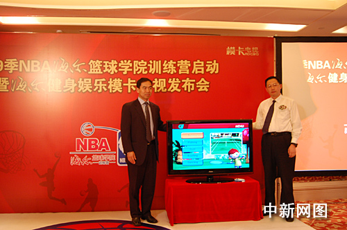 秉承NBA的體育及娛樂(lè)精神,在此次啟動(dòng)儀式上,作為NBA官方指定使用電視產(chǎn)品——海爾彩電推出了健身娛樂(lè)模卡電視,并發(fā)布了“云媒體”戰(zhàn)略。海爾集團(tuán)信息產(chǎn)品本部總工程師翟翌立博士介紹,海爾推出“健身娛樂(lè)模卡”電視旨在讓更多的人足不出戶就可以快樂(lè)健身并體會(huì)NBA精神。同時(shí),隨著網(wǎng)絡(luò)時(shí)代的來(lái)臨,針對(duì)不同使用習(xí)慣用戶的需求,海爾彩電推出了“搜狐在線網(wǎng)絡(luò)?ā焙汀把咐紫螺d網(wǎng)絡(luò)模卡”,使得人們可以在家通過(guò)電視一鍵上網(wǎng)看高清大片,還將聯(lián)合更多的網(wǎng)絡(luò)內(nèi)容提供商,讓用戶無(wú)需擔(dān)心個(gè)人儲(chǔ)存設(shè)備空間的限制,可以隨時(shí)、無(wú)限量地自由選擇自己所需要的網(wǎng)絡(luò)內(nèi)容資源。