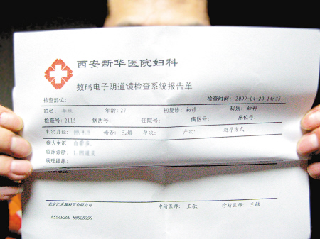 掛號(hào)時(shí),工作人員說(shuō)院里主要是李院長(zhǎng)在看病,他是治療風(fēng)濕病的專家,但也能看婦科,并建議她掛中醫(yī)內(nèi)科號(hào),表示婦科沒(méi)有醫(yī)生,只有一個(gè)護(hù)士,最好先請(qǐng)李院長(zhǎng)診斷再說(shuō)!拔覟榭床≌(qǐng)了半天假,想著既然來(lái)了就檢查一下吧,于是沒(méi)有掛號(hào)就來(lái)到五樓婦科詢問(wèn)!闭f(shuō)明情況后,劉姓護(hù)士讓她先交費(fèi),再做電子陰道鏡檢查,看到底有什么問(wèn)題。大約半個(gè)小時(shí),李女士拿到了報(bào)告單,她發(fā)現(xiàn)診斷醫(yī)師欄寫(xiě)著王醫(yī)生的名字!爱(dāng)時(shí)我覺(jué)得有點(diǎn)奇怪,掛號(hào)處稱沒(méi)有醫(yī)生,報(bào)告單上又寫(xiě)著醫(yī)生名字,這個(gè)王醫(yī)生到底在不在醫(yī)院?”李女士很不放心,報(bào)告上的時(shí)間也讓她心存疑慮,自己是22日上午做的檢查,但報(bào)告上顯示的卻是20日下午兩點(diǎn)多。