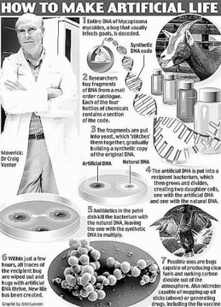 2010年5月20日,由美國科學(xué)家克雷格·文特爾主持的研究團(tuán)隊(duì)宣布,世界首例人造生命——完全由人造基因控制的單細(xì)胞細(xì)菌誕生。克雷格·文特爾將“人造生命”起名為“辛西婭”(Synthia),意為“人造兒”。